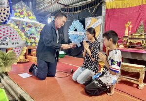 ร่วมเป็นเจ้าภาพสวดอภิธรรมศพผู้ปกครอง ของเด็กชายอัษฎาธร สายเสมา นักเรียนชั้นมัธยมศึกษาปีที่ ๑ และเด็กหญิงอภิสรา สายเสมา